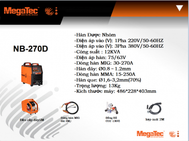 Máy hàn MIG MegaTec - NB-270D cam kết máy chính hãng 100% bảo hành 2 năm