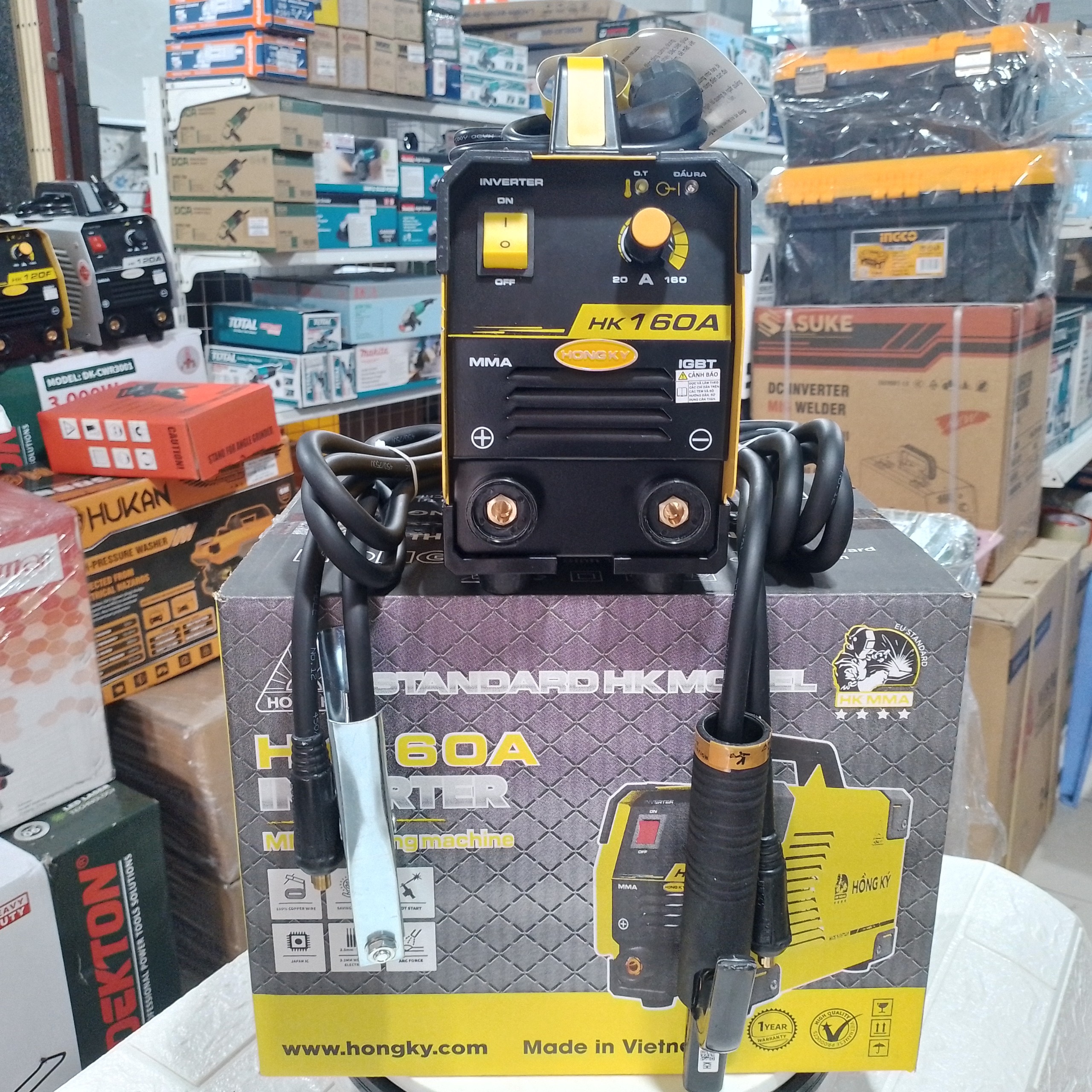- Phụ kiện: Bộ kìm hàn, bộ kẹp mass