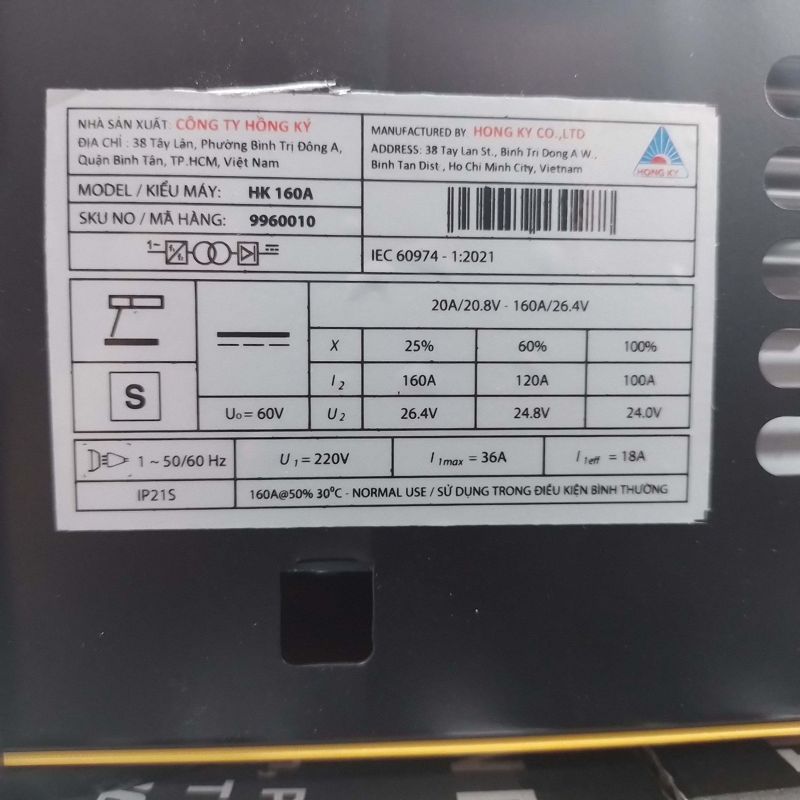 - Khoảng Dòng Hàn: 20-160A