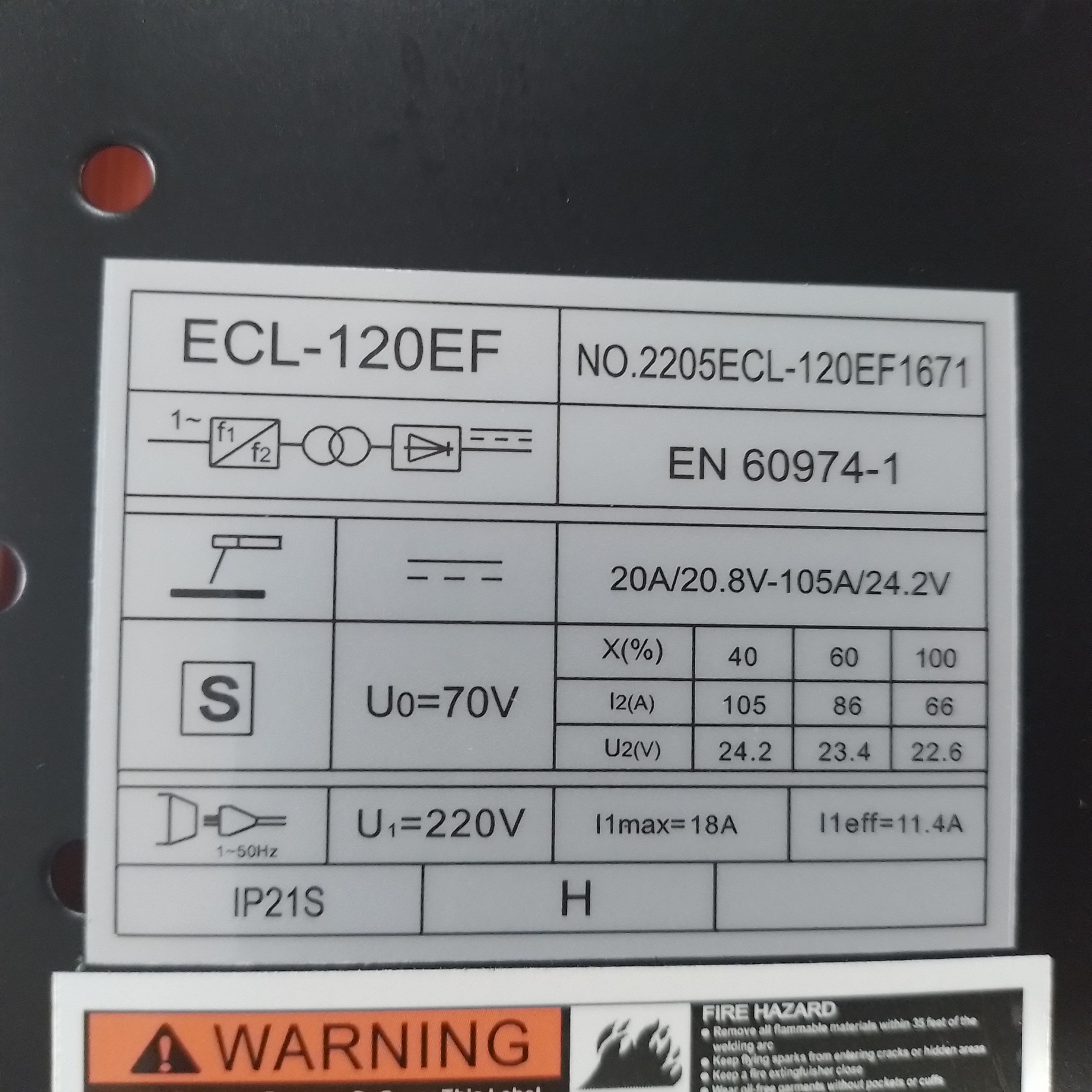 - Dòng hàn: 40-120A